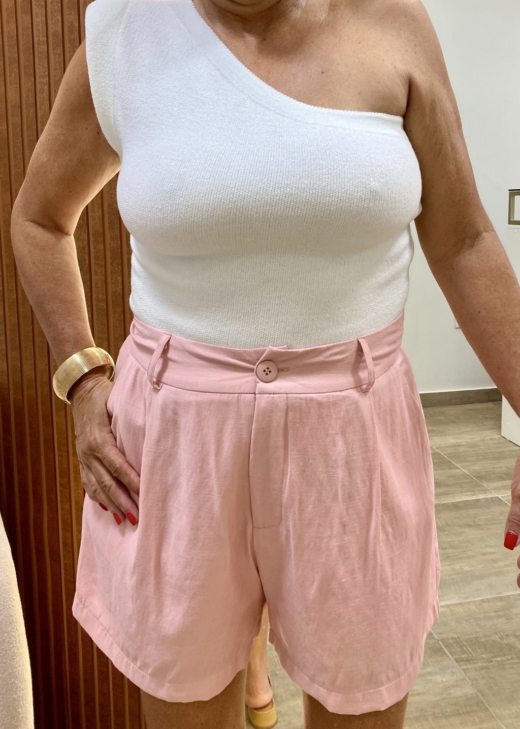 - Short Lírio modelagem cintura alta, com feicho em botão e zíper, possui passante para cinto e bolso faca. Possui forro.