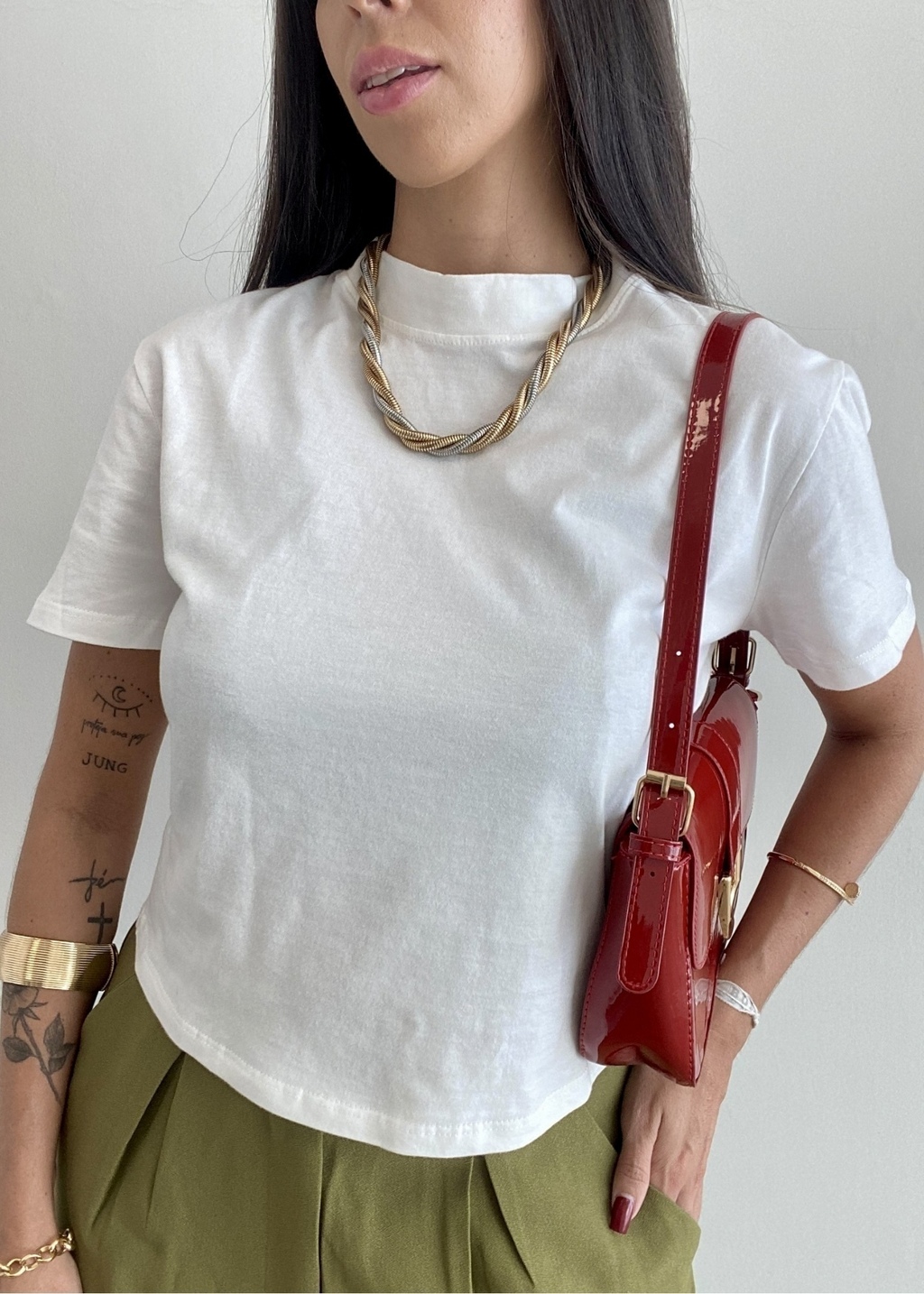P – Ombro a ombro: 43,5 cm. Manga: 18,5 cm. Busto: 110 cm. Comprimento total: 53cm.