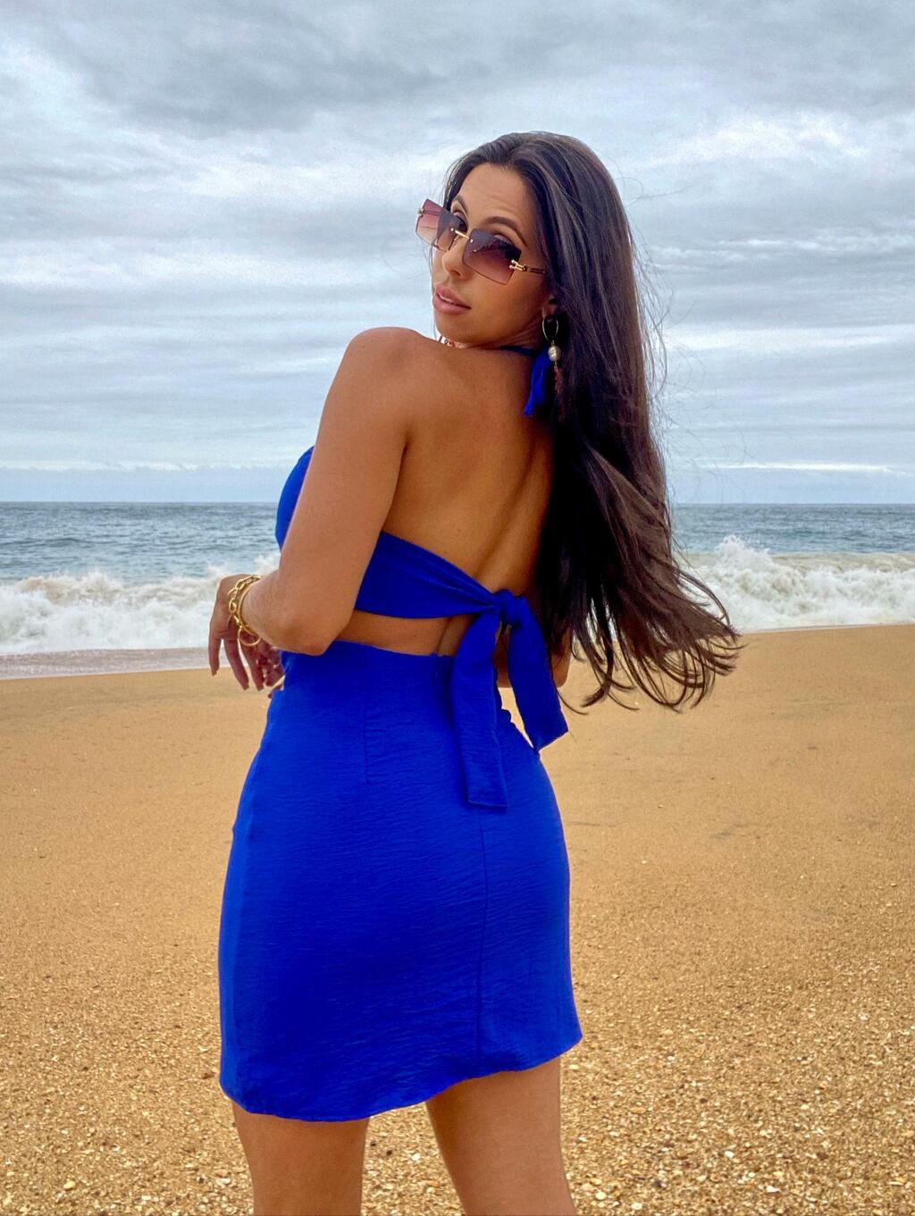- Vestido Brisa, em Duna Air Flow, com amarração no pescoço por tira fixa. Possui detalhes em recorte na cintura, dando um charme a mais na peça. Possui elasticidade para melhor caimento da peça ao corpo e feicho em zíper nas costas. Barra com acabamento pespontado. Possui forro duplo, zero transparência.