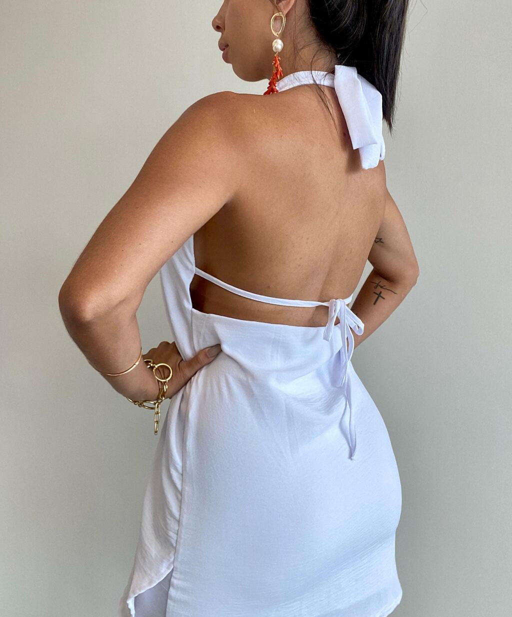 - Vestido Oceanica, em Duna Air Flow, possui elástico laterais da blusa para melhor ajuste ao corpo. Possui recorte nas costas e viés amarração. Barra com acabamento pespontado. Peça dupla, zero transparência.